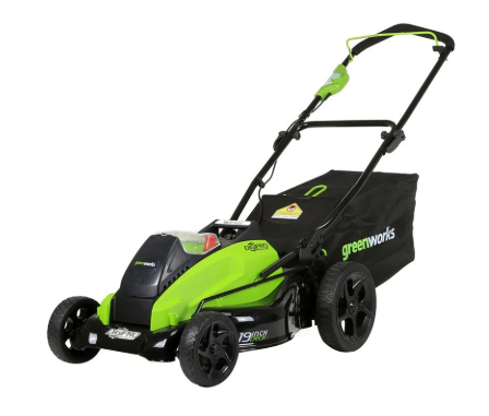 รถตัดหญ้าไร้สาย GREENWORKS GWS0010 (สินค้าวางจำหน่ายรวมแบตเตอรี่และแท่นชาร์จ) ใช้พลังงานจากแบตเตอรี่กำลังมอเตอร์สูง 40 โวลต์ ให้รอบเดินเครื่อง 3,200 รอบ/นาที ตัดได้เรียบเนียน และรวดเร็ว ด้วยความกว้างใบมีดตัด 45 ซม. (18 นิ้ว) สามารถเลือกฟังก์ชั่นใช้งาน 3 แบบ คือ การเก็บหญ้าในถุงเก็บหญ้า, การพ่นหญ้าออกด้านข้าง รวมถึงบดหญ้าเป็นปุ๋ย โดยปรับระดับการตัดหญ้าตามความสูงได้ 7 ตำแหน่ง ตั้งแต่ 2.8 ซม. ถึง 7.6 ซม. มาพร้อมล้อยางใช้งานได้ทั้งพื้นผิวหญ้าทั่วไป และพื้นผิวขรุขระ